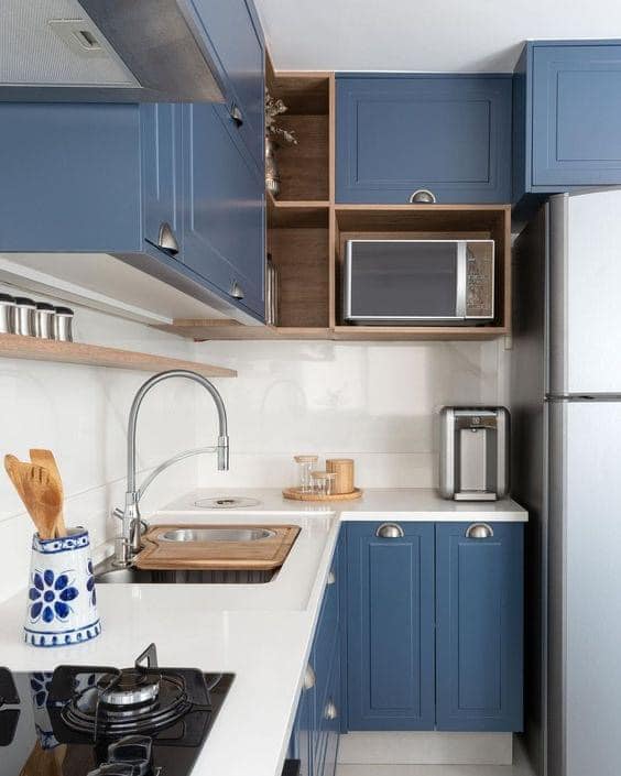 L型廚房布局通常涉及兩面相鄰的墻壁上放置廚房家具。這種布局通常非常有效,因為它最大程度地利用了角落空間。