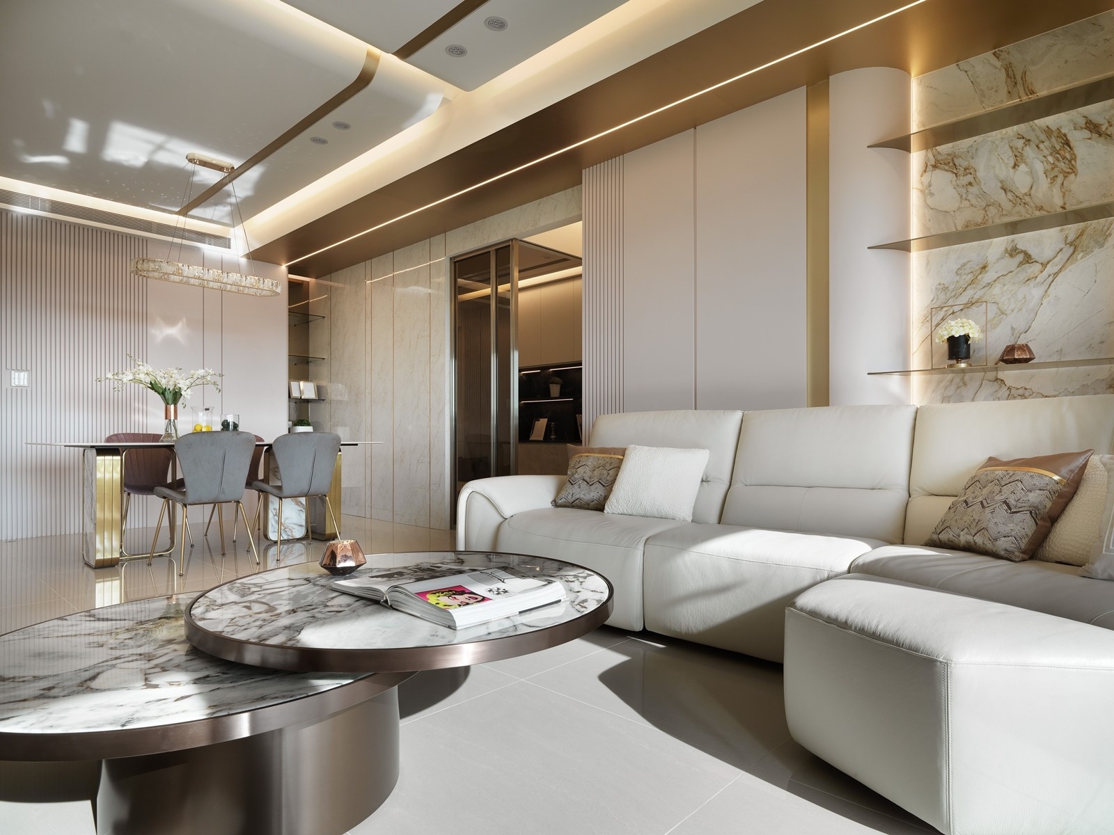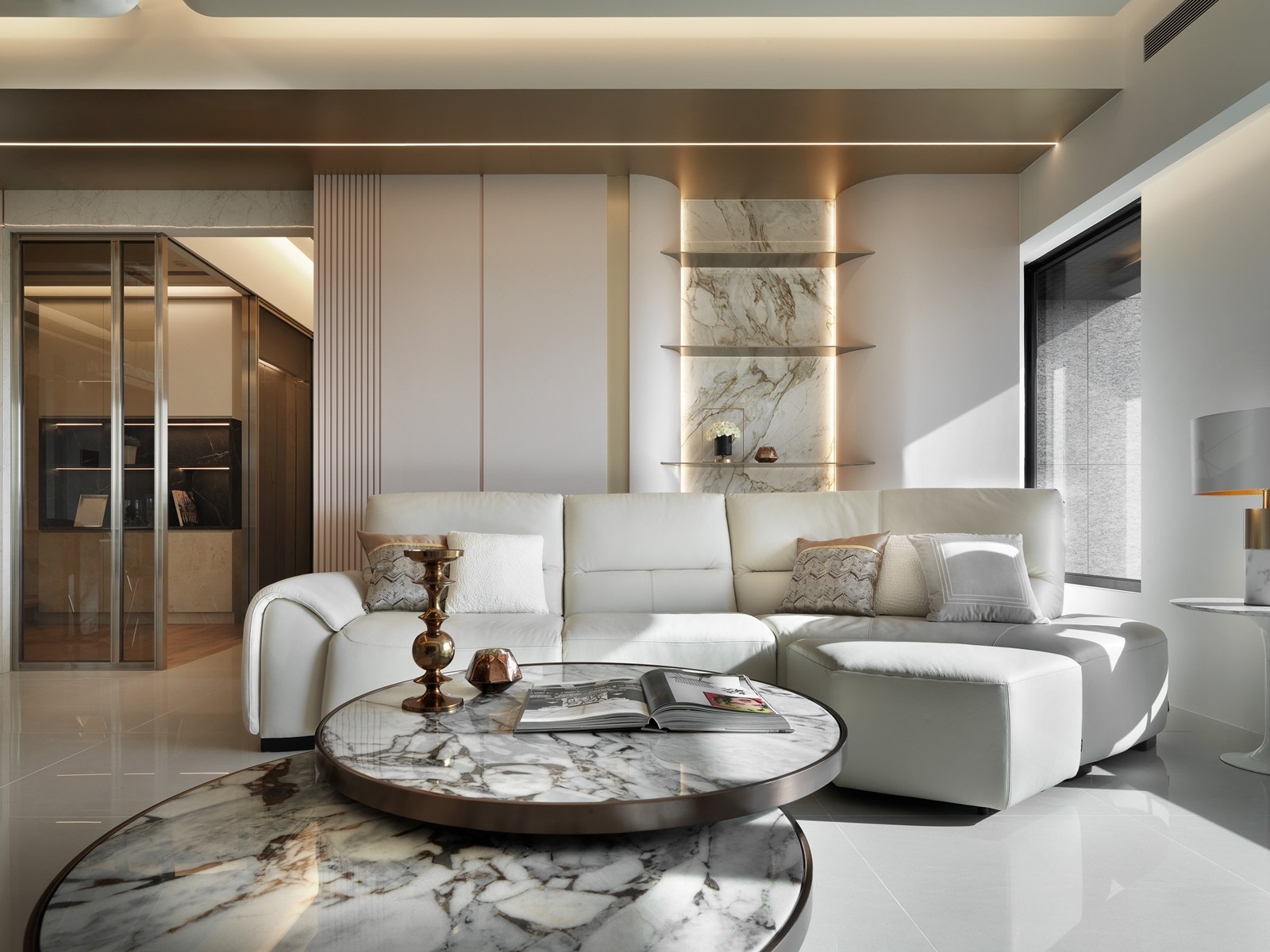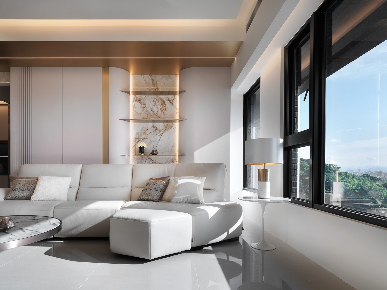 在光帶的牽引與渲染之下,建構(gòu)出一個(gè)奢華又兼具藝術(shù)底蘊(yùn)的美感空間,為整個(gè)家居增添了一抹奢華光影。