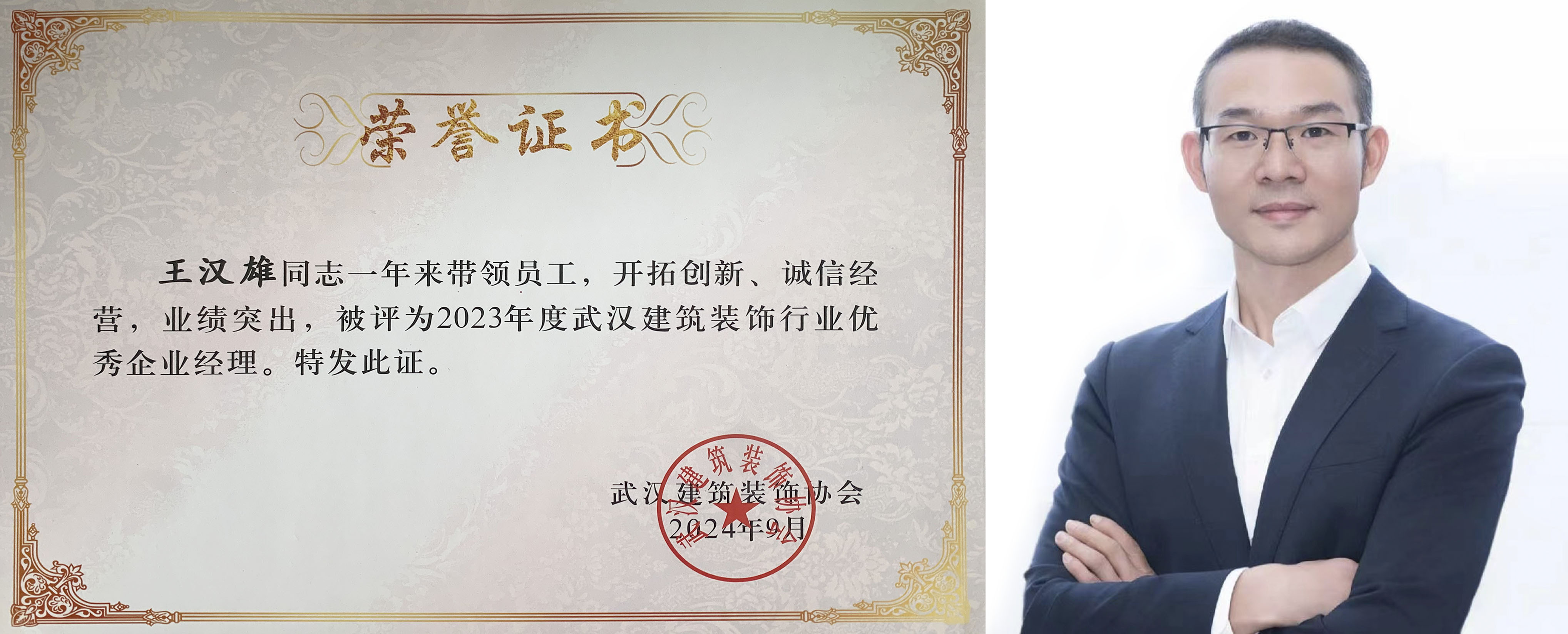 江南美裝飾集團總裁王漢雄先生榮獲2023年度武漢建筑裝飾行業(yè)優(yōu)秀企業(yè)經(jīng)理榮譽!