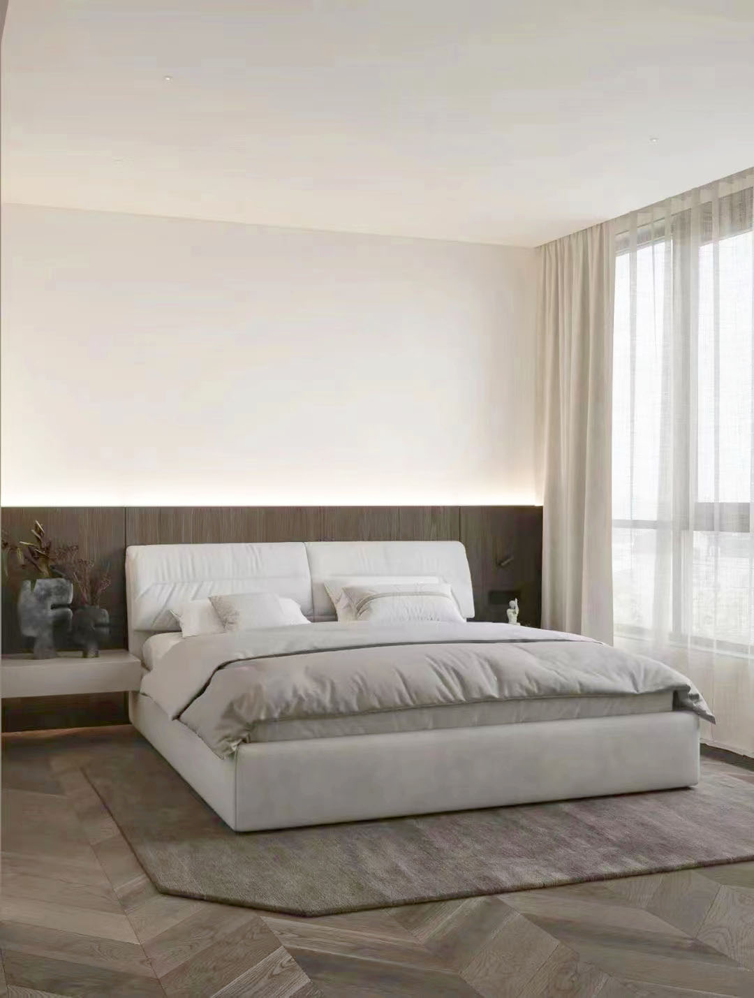白色的墻面讓整個房間顯得更加明亮,搭配小型床頭燈,為夜晚增添了一絲柔和的光影。在這里,居住者可以享受到寧靜的休息時光,迎接每一個嶄新的一天。