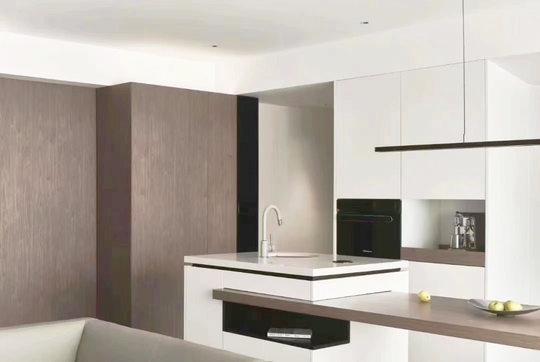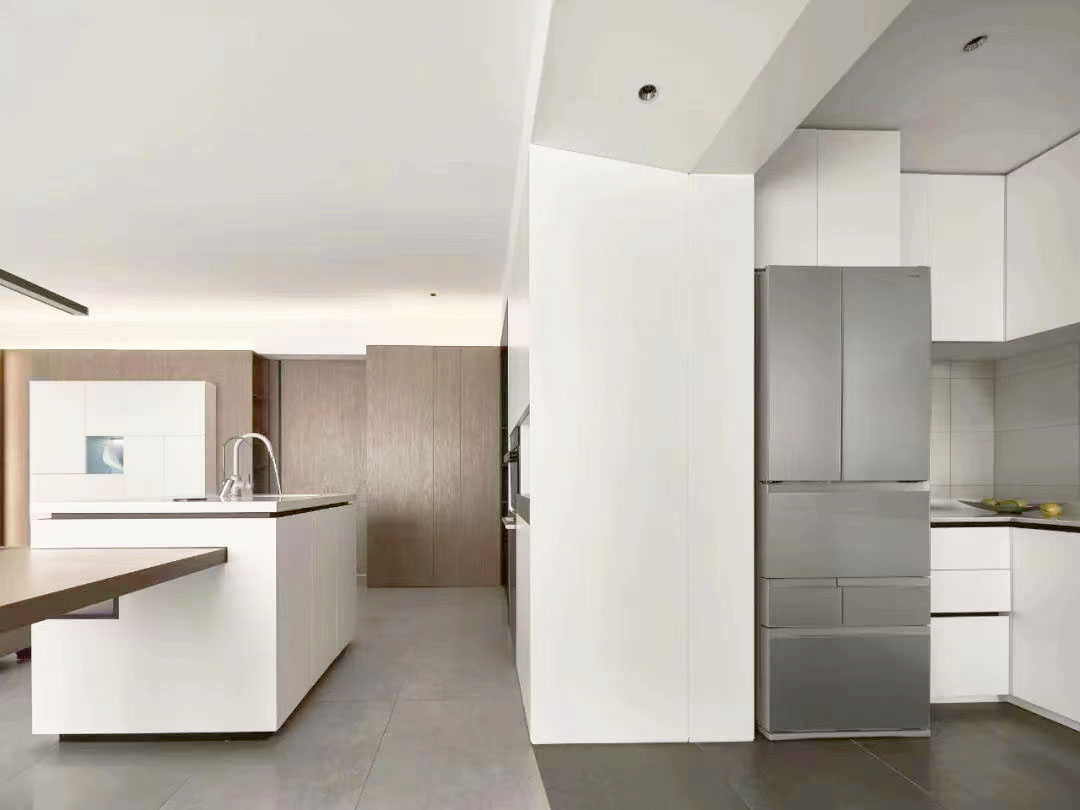 嵌入式冰箱的設(shè)計(jì)使得空間更加整潔有序,而充足的操作臺面則為烹飪提供了便利。這個廚房不僅是烹飪的空間,更是家庭互動和交流的場所。